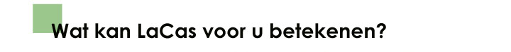 LaCas BV en de aan LaCas verbonden partijen zijn ervaren en spreken de taal van de zelfstandige ondernemer. Probleempreventie en een pragmatische aanpak van zaken zijn typerend voor de werkwijze van LaCas. LaCas beschikt over een uitstekend netwerk van specialisten, zowel nationaal als internationaal.